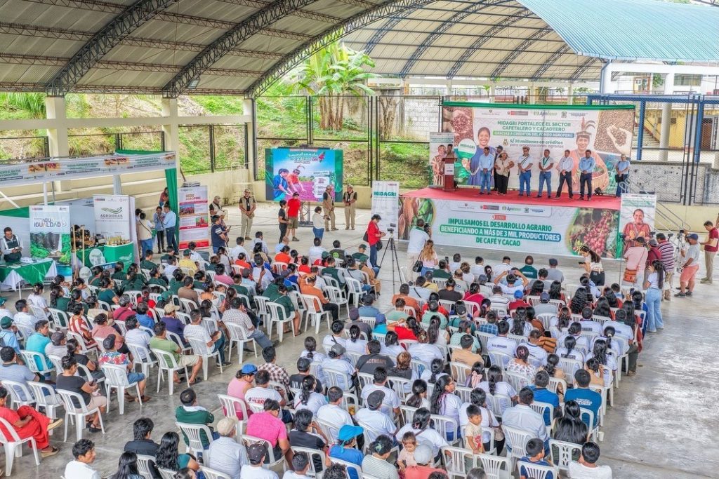 “Hoy el Gobierno, a través del Ministerio de Desarrollo Agrario y Riego, entrega créditos para respaldar el esfuerzo de muchas familias agricultoras que trabajan día a día en el campo, y que apuestan por organizarse y salir adelante, impulsando las cadenas productivas de café y cacao”, expresó Meza.